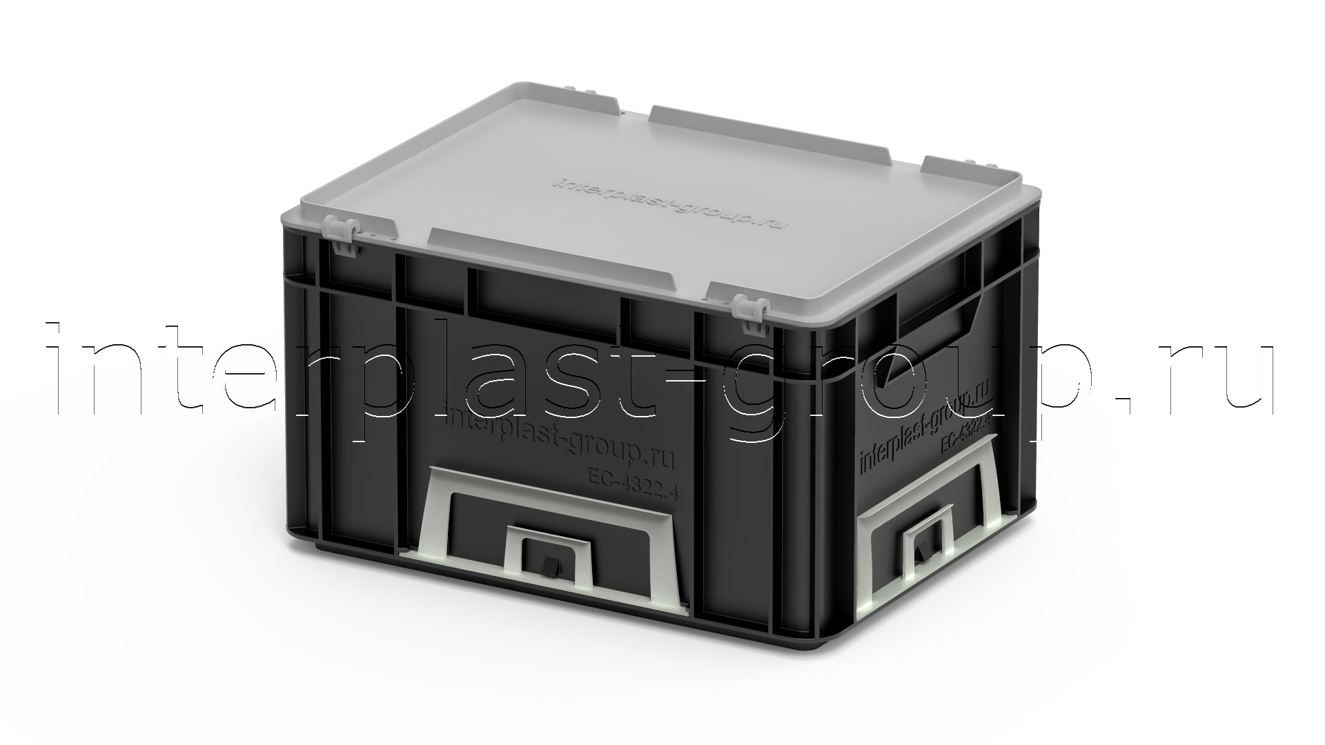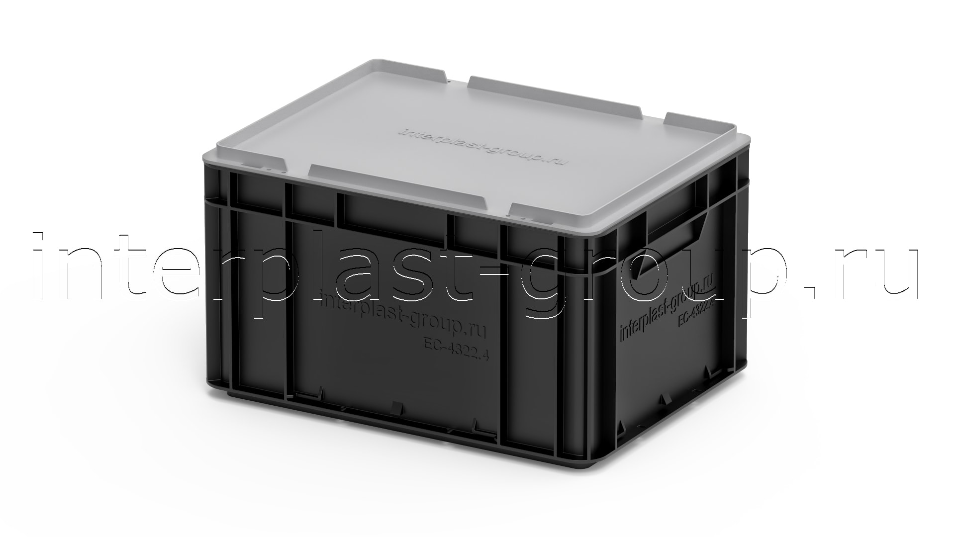 Евроконтейнер закрытые ручки/усиленное дно (черный), 400x300x220 мм