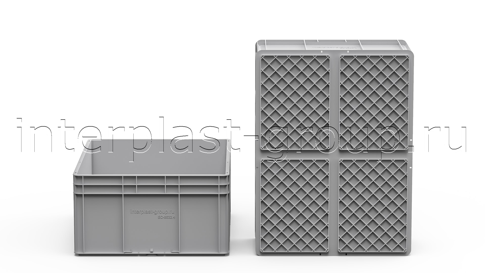 Евроконтейнер закрытые ручки/усиленное дно (серый), 800x600x320 мм