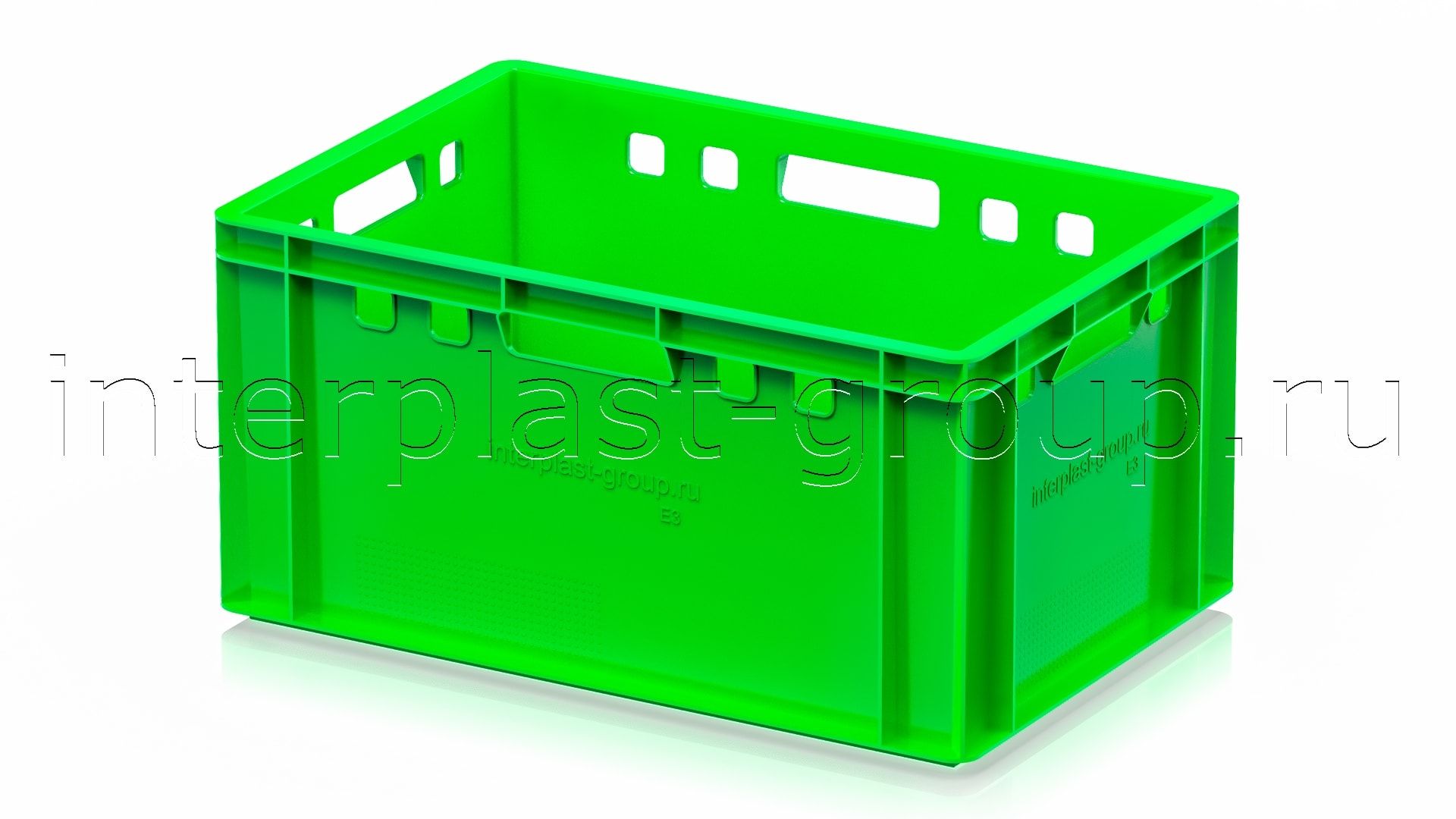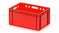 Ящик для мяса Е3 это третий по размеру в линейке мясных ящиков. Разработан специально для использования в мясной промышленности. Отлично штабелируется и собирается в единый сет со всеми ящиками серии. Изготовлен из первичного полиэтилена, и адаптирован для хранения в холодильных и морозильных камерах.