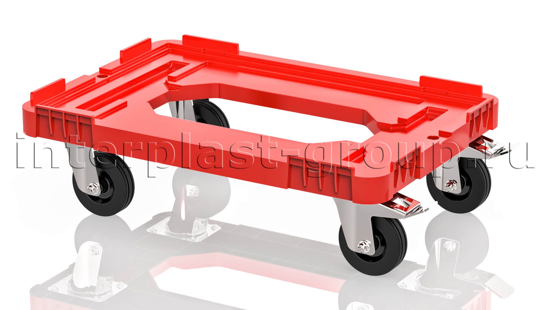 Тележка пластиковая с отверстием 2 колеса с тормозом красная в Россоше